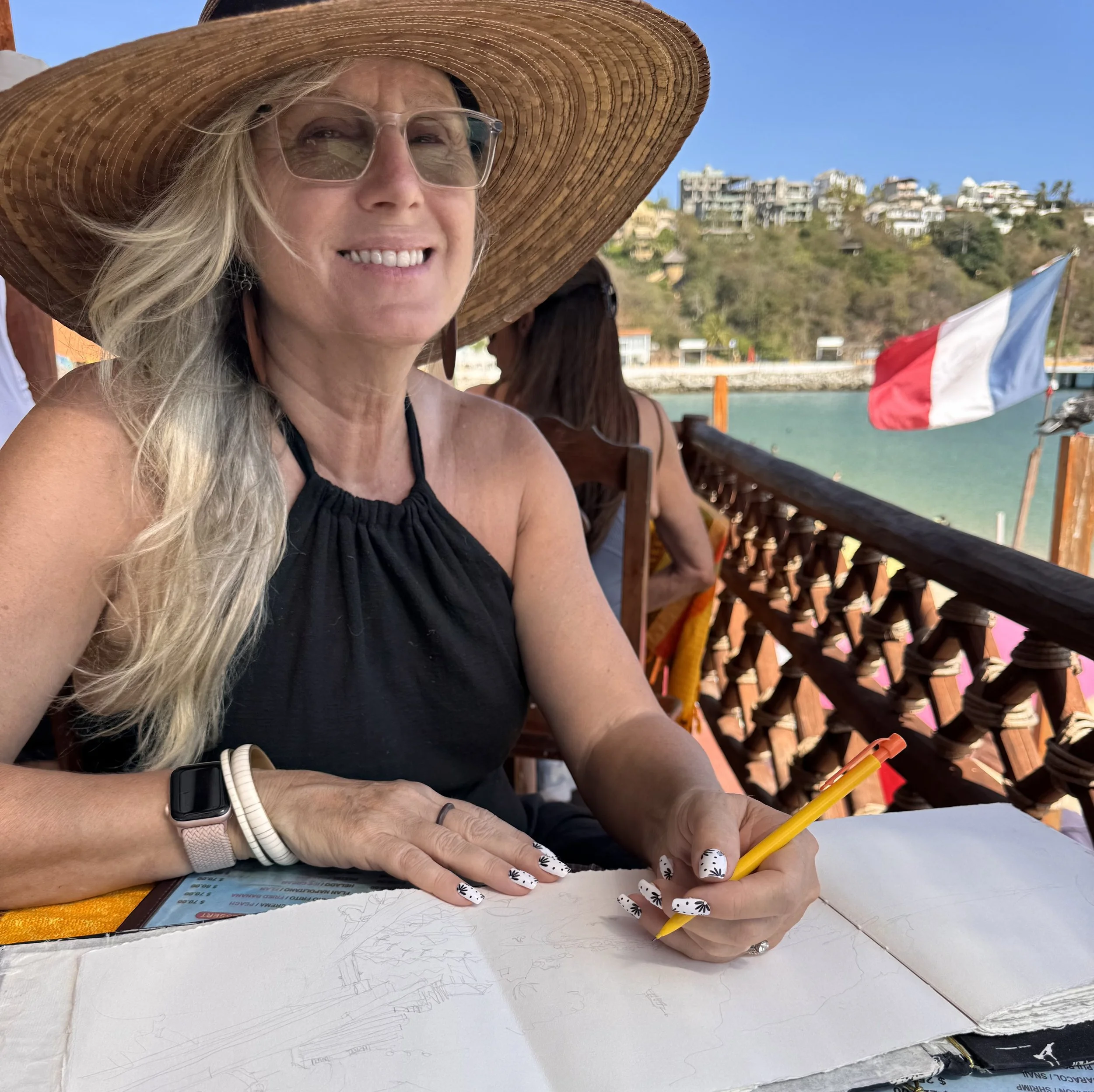 I love to draw when I travel, especially on location. It is my way of creating a visual journal of the people and places I am experiencing. It used to be in little sketchbooks, some of which I’d make by hand. Now it’s mostly on my iPad, using Procreate as it is so portable and easy to pull out when I see an opportunity to capture a moment.