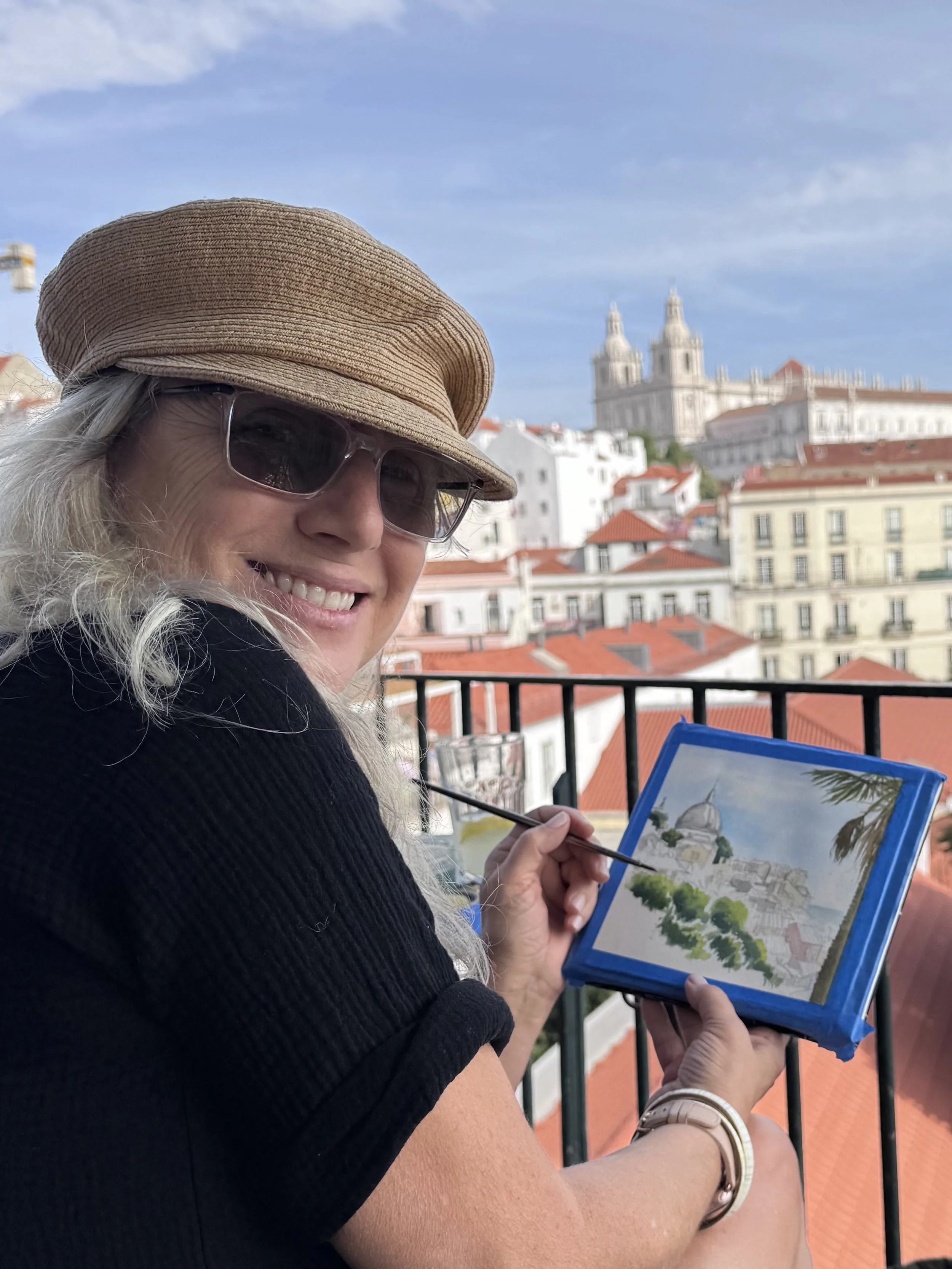 I am proudly Canadian, but I spend much of my time abroad painting, sketching, teaching and writing. I get invited on cruise ships to teach watercolour and printmaking workshops, which gives me a great opportunity to travel all parts of the globe. I also do workshops and artist-in-residence experiences, and travel for commissioned work, live painting at weddings, travel writing and more.